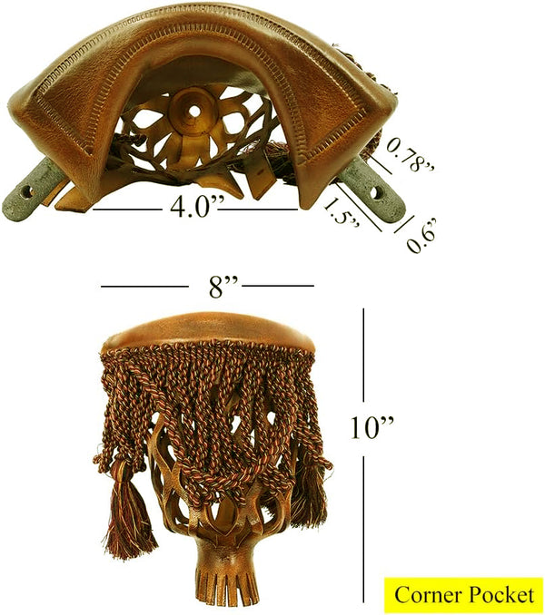 Set of 6 leather pockets includes 4 corner pockets and 2 side pockets. Each pocket has pre-drilled holes for easy installation.